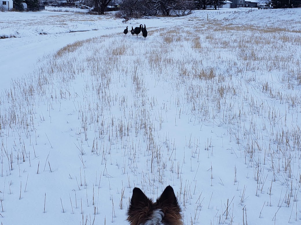 Seeing turkeys was pretty great, and exciting, but I hear that Chess, the purebred border collie who lived here before me, got to see a small herd of elks out in the field, and so I want to see some of those, too. I hear that elks are a little bit bigger than turkeys.