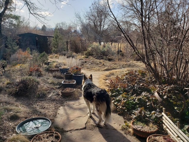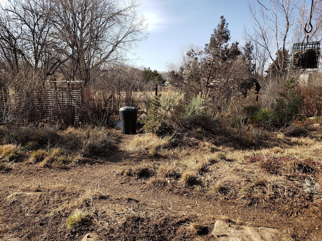 Low-level fear, huh, I guess I know what that is. Tell the guy you live with I sympathize. In the photo with the very excellent trash can, what is the cage-enwrapt object which dangles from a hook? Inquiring minds do want to know, if not exactly an intelligent mind since I am spared tinnitus. I do have bad hearing, though. I do like the part where you show lovely flowers, Mani, since we also garden here, under much different conditions. We are currently donating compost material to the city and not our own bin, which situation makes me *grr.* However, my husband declares dealing with turning and distributing makes his back hurt–it’s an aging back–so I’ve decided to be graceful about the city’s obtaining our treasure. And thank you, dear dog, for valuable clarity: your garden is centered around bulbs and native grasses. I will look with new eyes. Although you’d think I would’ve guessed by now.