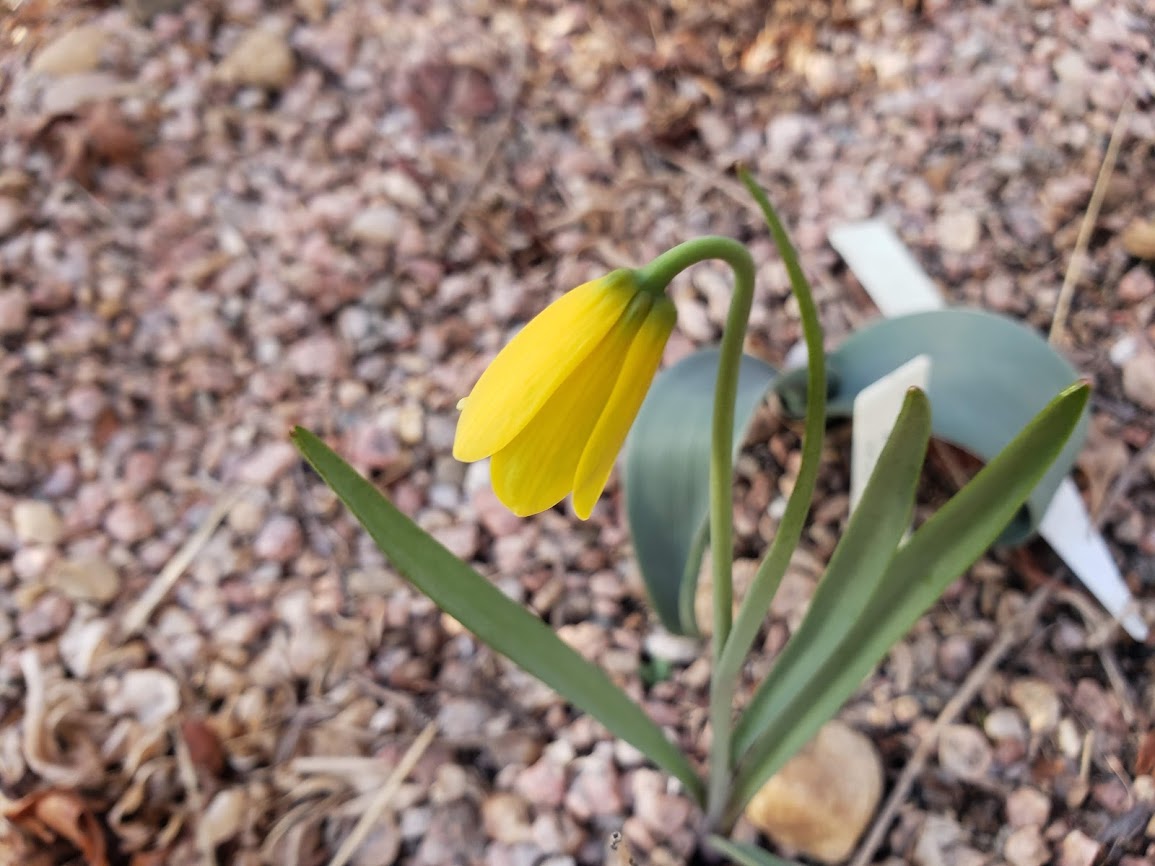 All kinds of bulbs are in flower now. This is Fritillaria pudica.