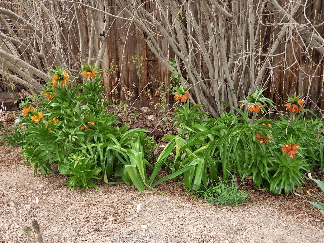 And the Fritillaria imperialis are flowering, too. They got knocked about by the wind.