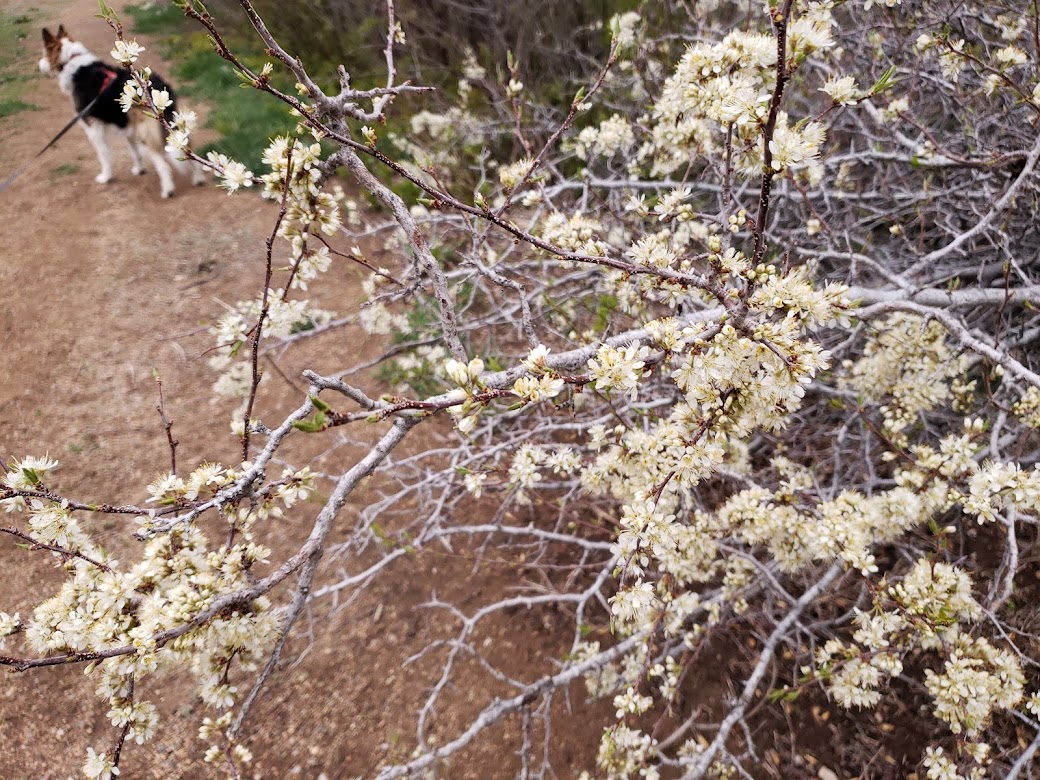 The wild plums (Prunus americana) are flowering along the canal. They have a very nice fragrance. The plums make good jam, according to the guy I live with.