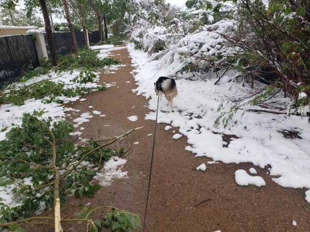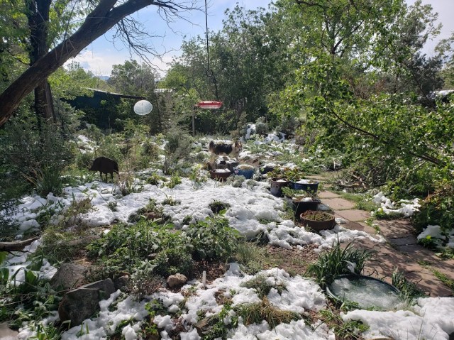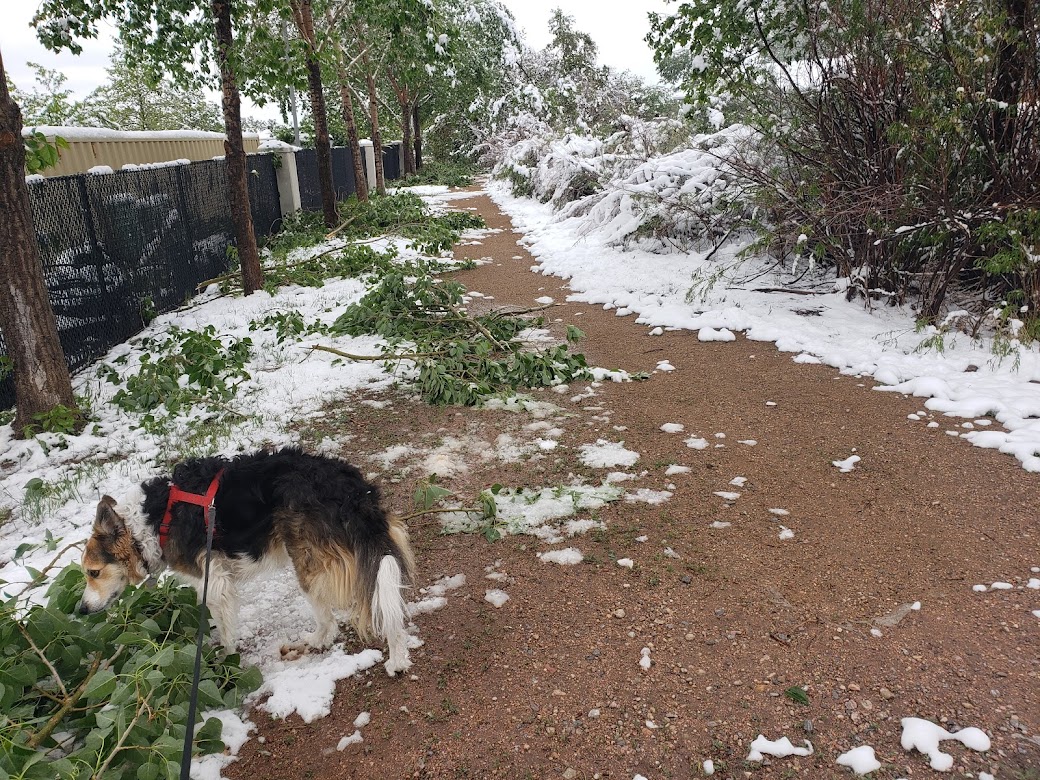 Those are cottonwood branches. There are downed branches everywhere, in our garden too, and yesterday the guy I live with did a bunch of sawing. We didn’t have that much damage, though the tree branches are a real nuisance to clean up.