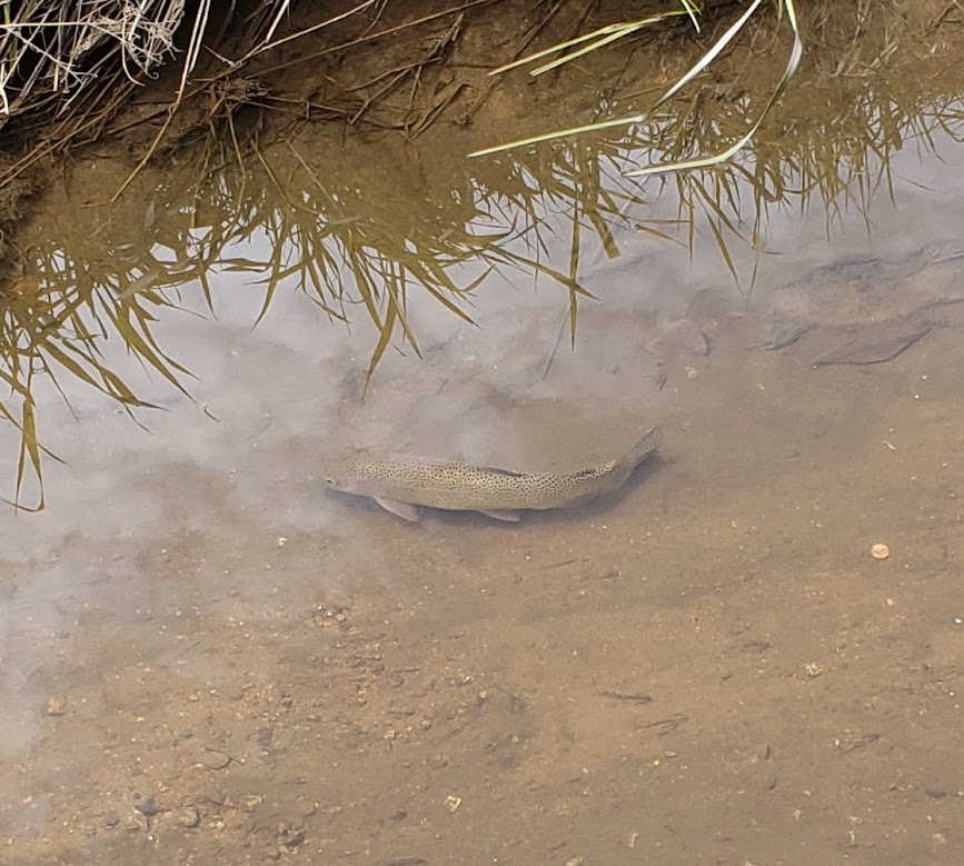 A really big trout. It seems early in the year to be seeing trout in the canal, but, like the guy I live with says, things are weird.