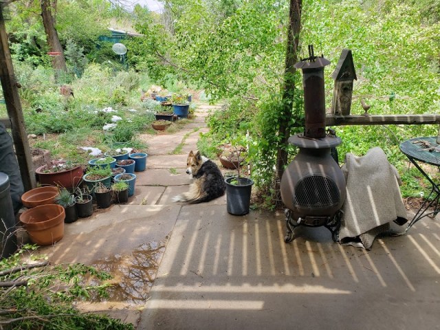 Thanks. It’s pretty green now, and still wet. The patio rug, folded up by the chiminea, got soaked, so it’s drying.