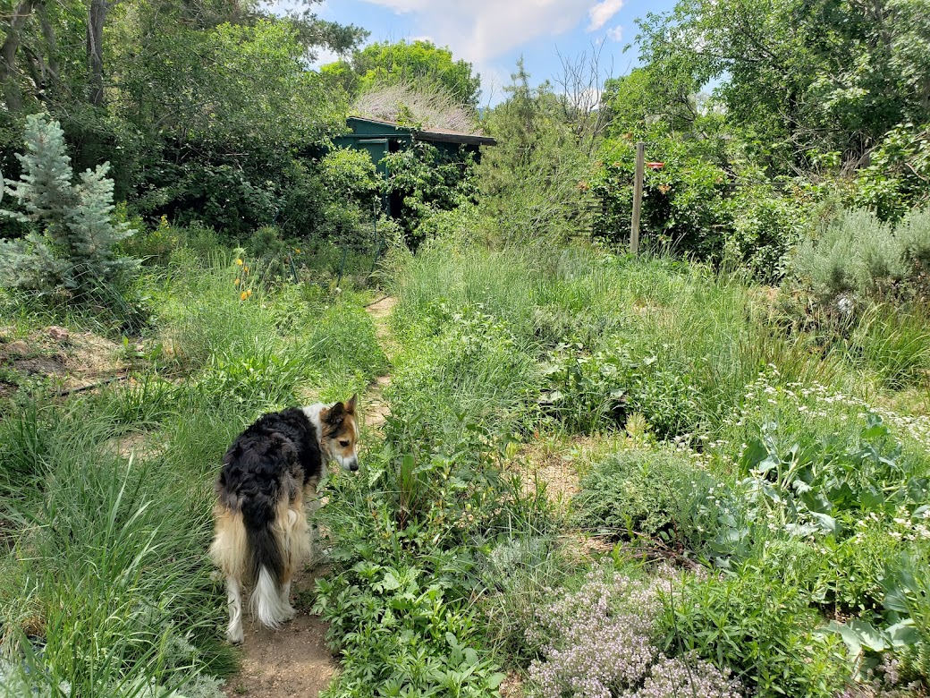 It started out in the “way back” border, but instead of going into the field, which would be wrong, it’s seeded in the other direction, toward the house.