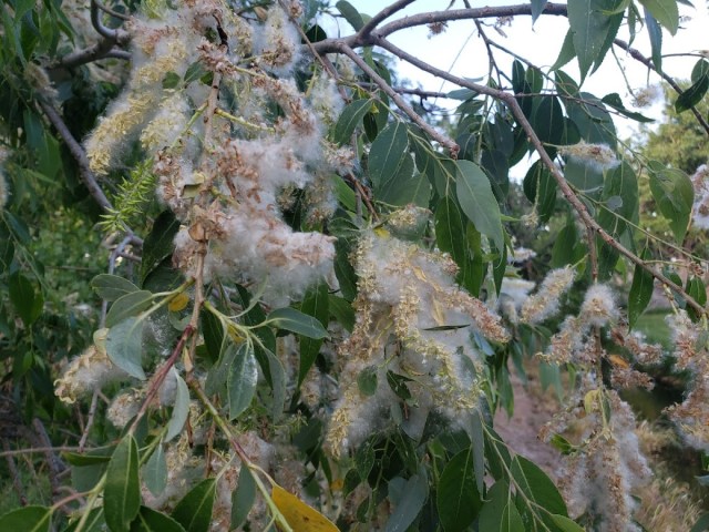 Cotton is flying through the garden, but it’s not from cottonwoods, rather from the willows along the canal. The guy I live with said cottonwoods and willows are in the same family.
