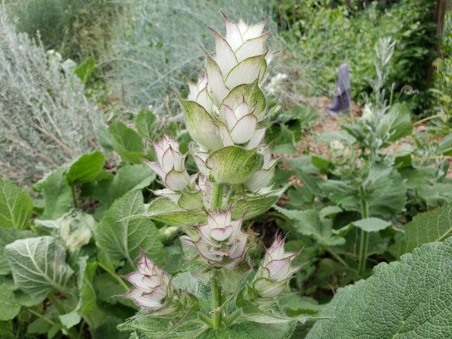 The salvias are starting to flower, too. This is Salvia sclarea var. turkestanica. Kind of a smelly plant.