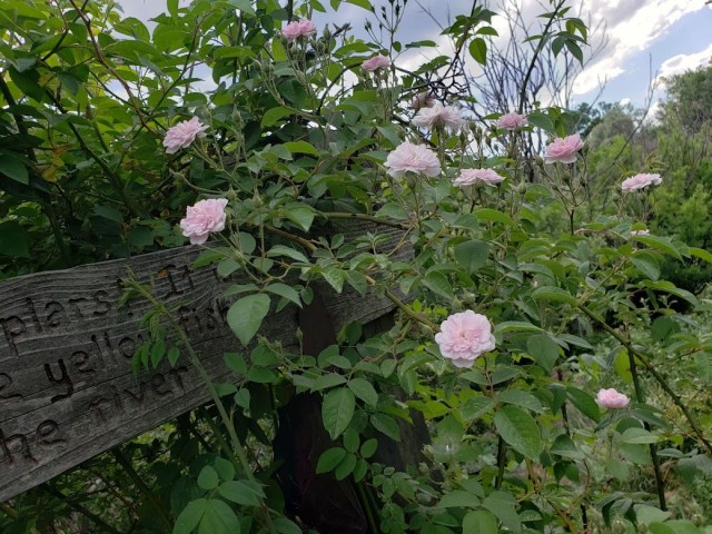 Roses are so wonderful in low humidity areas (20% would be refreshingly low humidity for us!) – while one can spray weekly against blackspot (and we have neighbors who do) my approach is just to avert the eyes from the bushes once they start to defoliate from the spots. And gradually remove the roses, sadly.