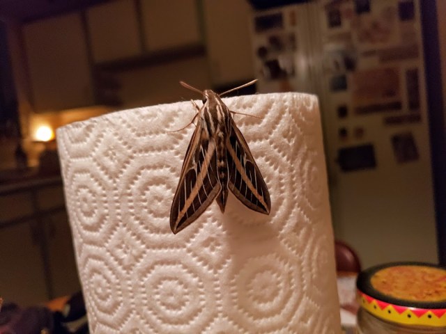 There was a moth in the kitchen this morning. The guy I live with grabbed it, gently, and let it go, outside.