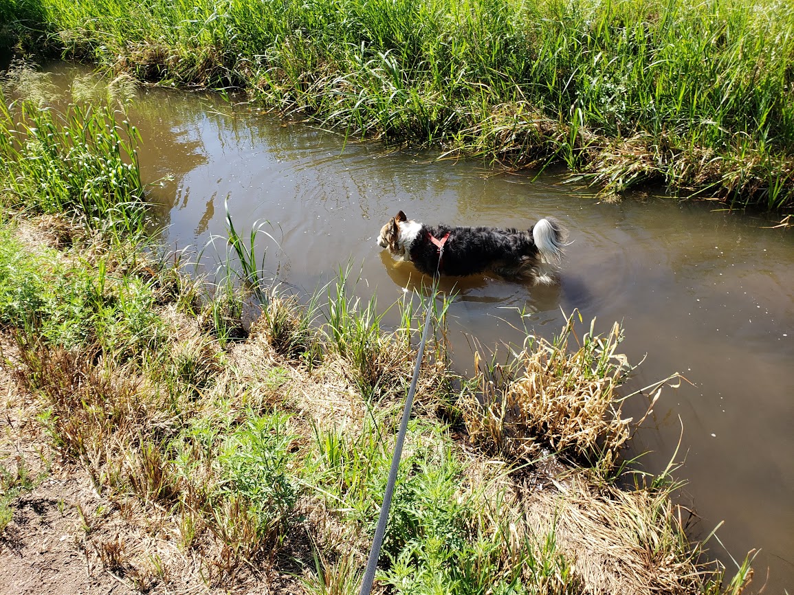 You look quite contented wading in the creek Mani. Our old friend Tommy used to do that too. He never learned to swim. Yeah for the rain. Impatiently waiting for something like that to happen here too.