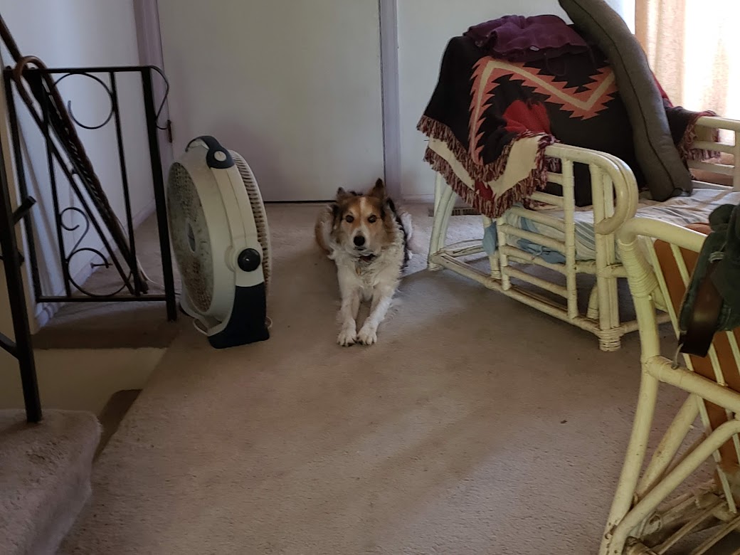 You can see the hairs on my posterior being blown about by the swamp cooler, just like last time.