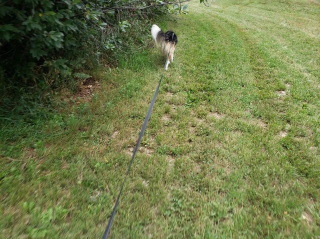 Anyway, we’re enjoying the cooler weather very much, and I’ll leave you with a picture of me walking in the newly-mowed field (yes, again).