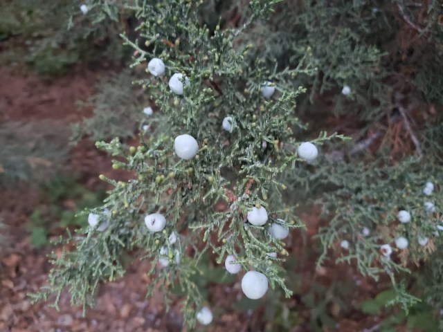 The juniper, Juniperus monosperma, has a bunch of berries now. The guy I live with has to sweep the berries off the sidewalk from time to time.