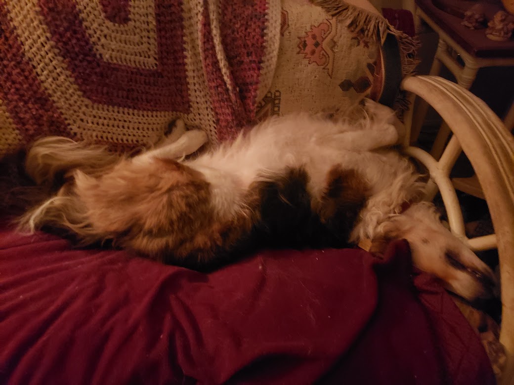Maybe you can see that I got my pantaloons trimmed. The guy I live with got a trimmer, like the one he uses to cut his hair, except this one is for dogs, which I’m, and while it was scary at first, he was able to remove a bunch of large mats, so I feel more comfortable.