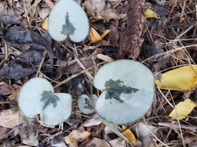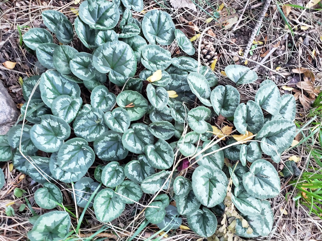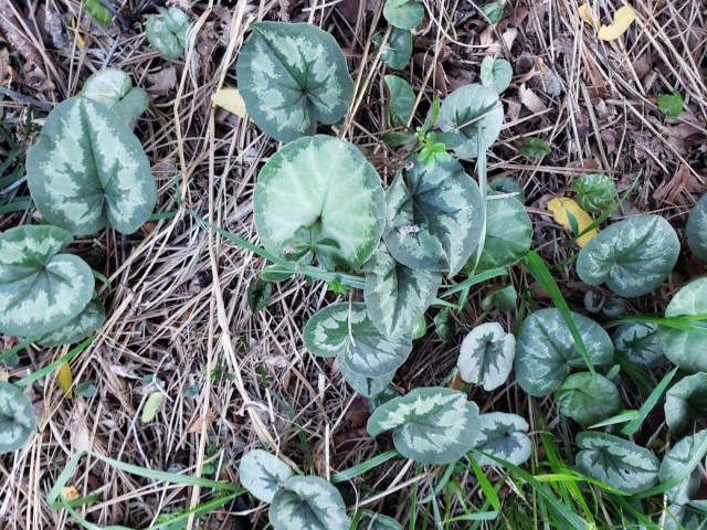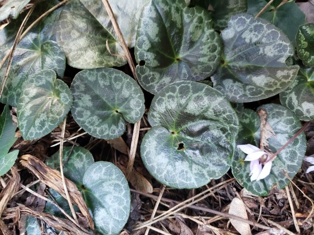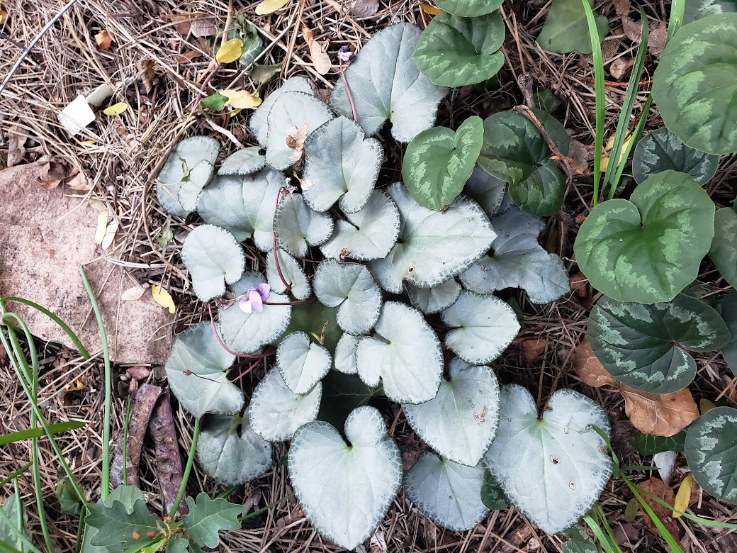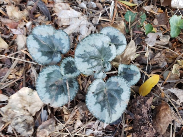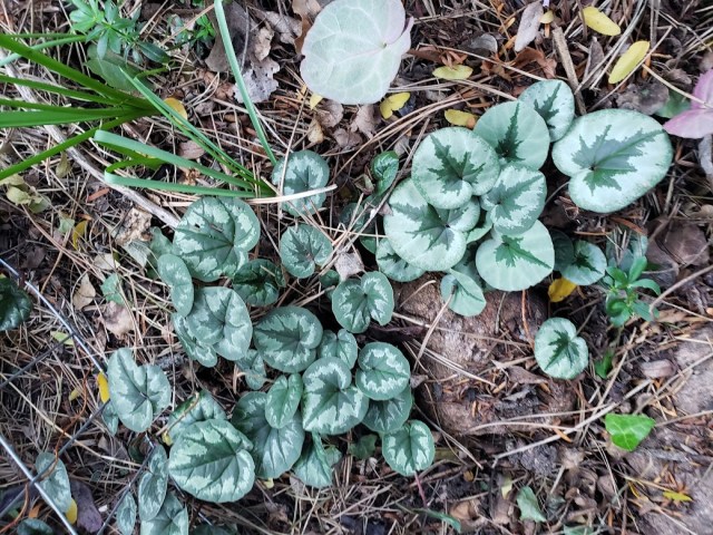 Anyway, your cyclamen are pretty. I do like their silvery foliage. I STILL lack any of those sorts of cyclamen here. I would like to get some from a neighbor if only I could justify it in one of the landscapes here. I will likely add some to my own garden, regardless of how appropriate they are. I believe that they would look nice on top of low stone retaining walls. I wanted to believe that the cyclamen in the neighbor’s garden are Cyclamen hederifolium, but I really do not know, and I have no pictures of them.