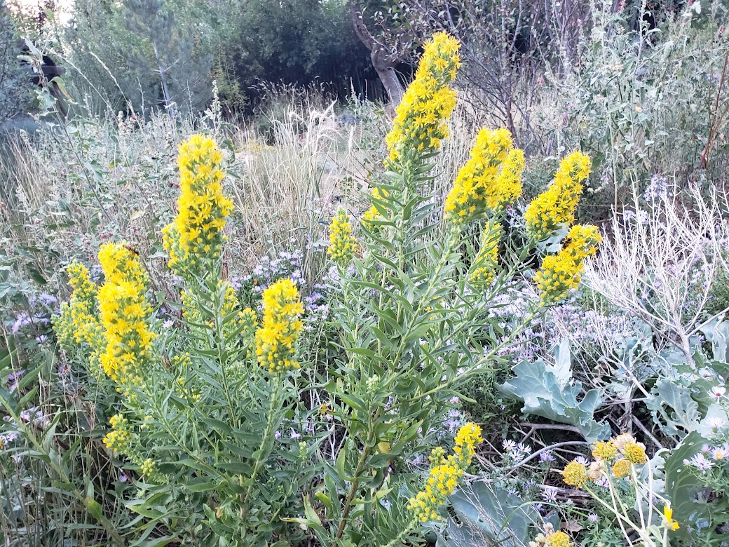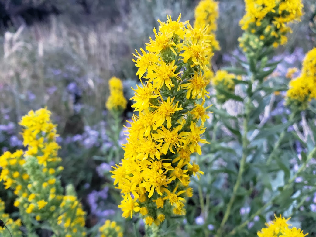 One of the guy I live with’s favorite plants is flowering now: Solidago ‘Wichita Mountains’ (he thinks it’s Solidago speciosa).