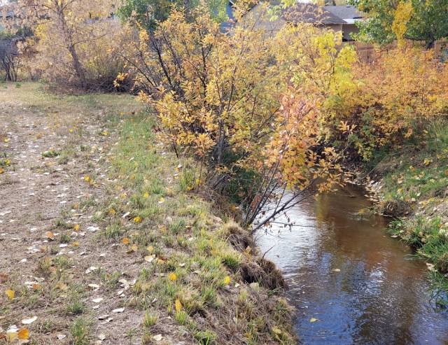 The canal, on our walk. Those are chokecherries, with maybe Rosa arkansana on the opposite bank.