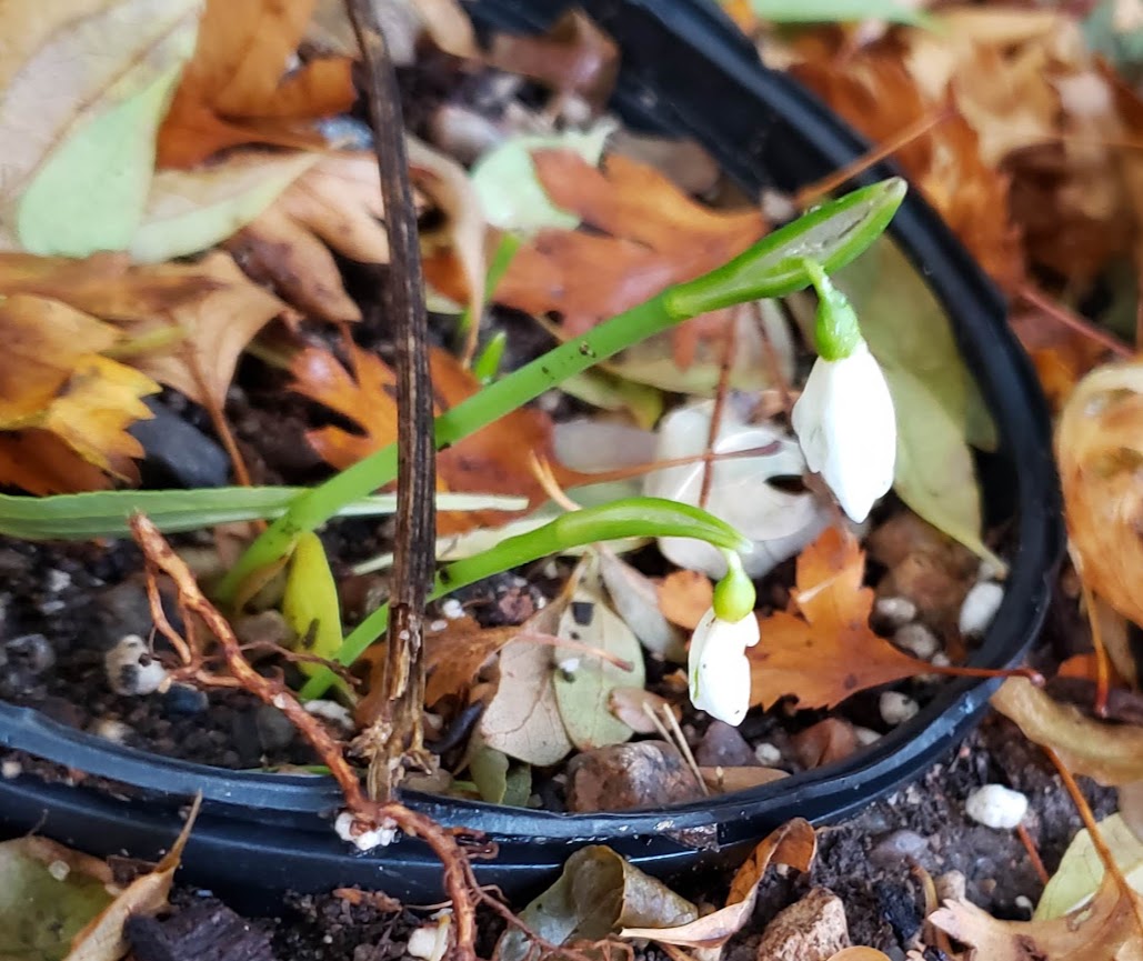 On the other hand, the first snowdrops are appearing, though the flowers are being gnawed on by grasshoppers.