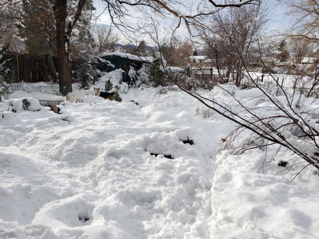 Greetings and salutations, everyone; yes, once again it is I, your popular host, Mani the purebred border collie, here to bring you up to date on our weather. You may remember me from such snow-related posts as “Snow Upon Snow”, among so many, many others.