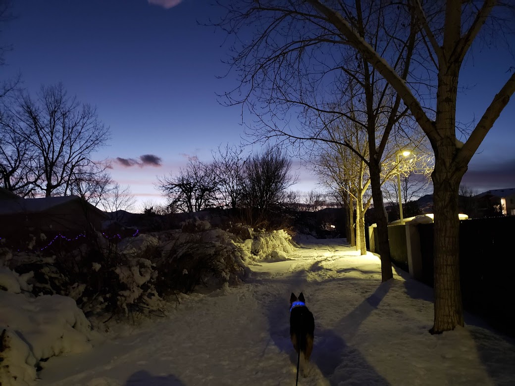 I’ll leave you with a picture of me walking home at “the blue hour”, with my blue collar.