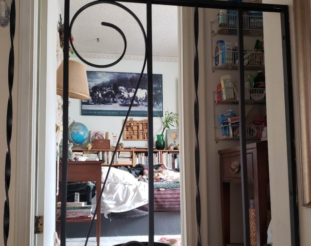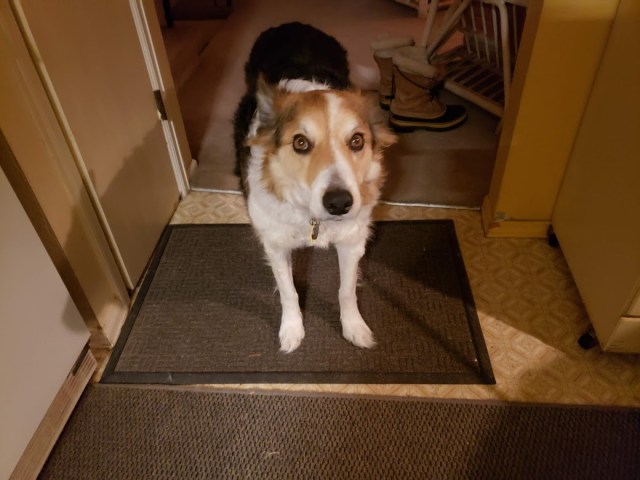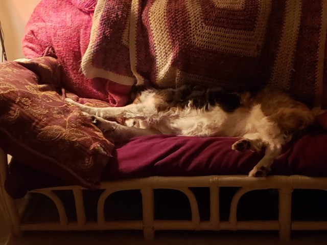 It’s covered with a worn-out blanket, or something, in case my paws are muddy, which they sometimes are.