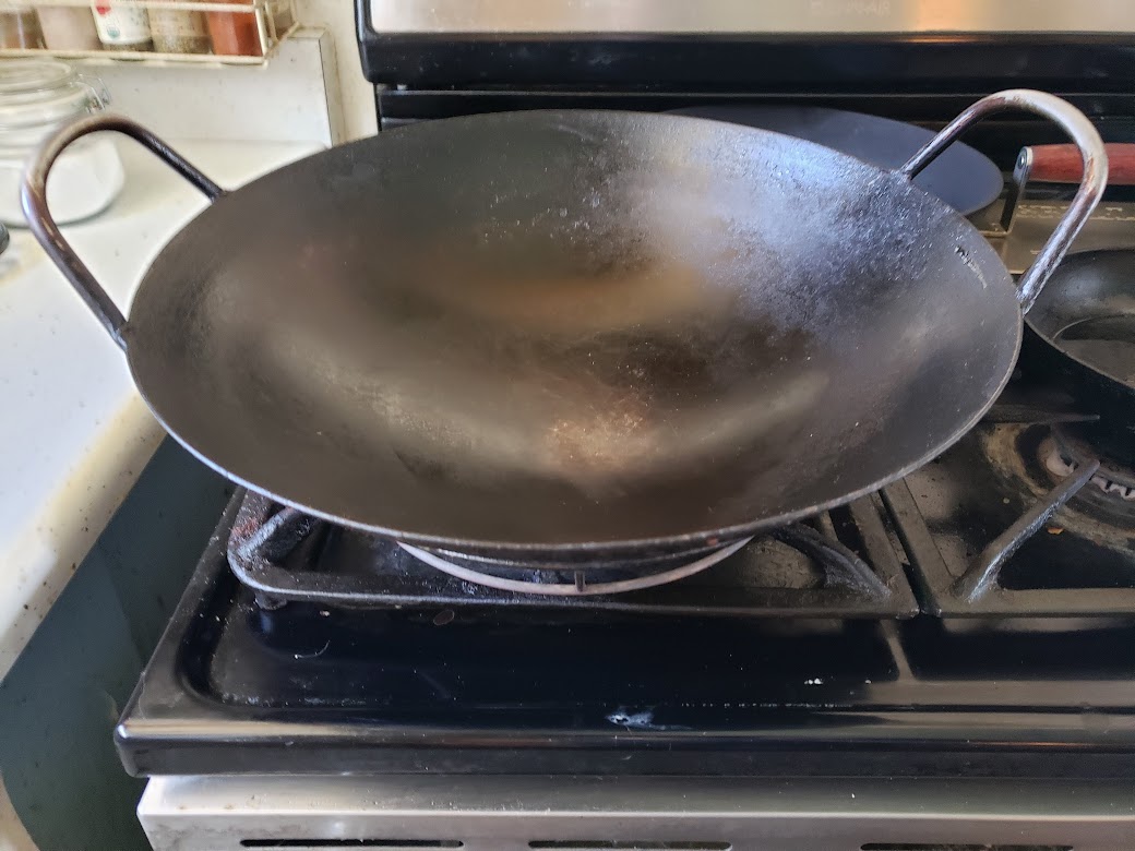 The old wok doesn’t need any more seasonin, but the new one has been a bit difficult.