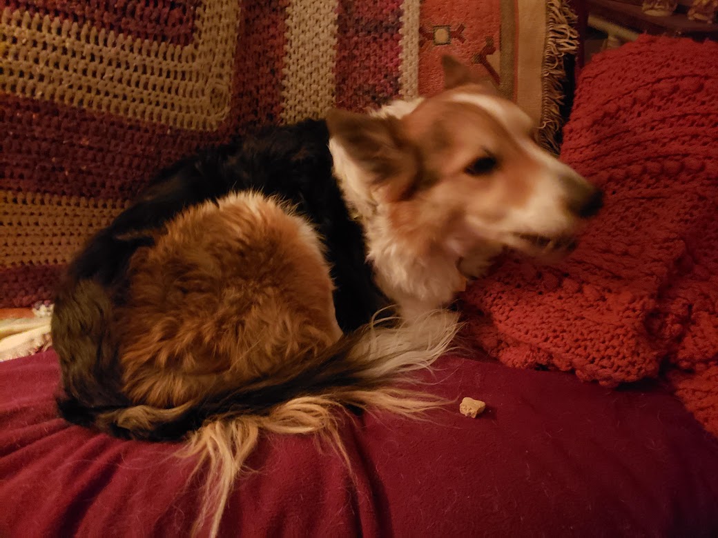 I know this sounds a bit spoiled, but the guy I live with said that Slipper, a purebred border collie who lived here before me, liked to have his biscuits brought up to him when he was lying in bed. That was spoiled.