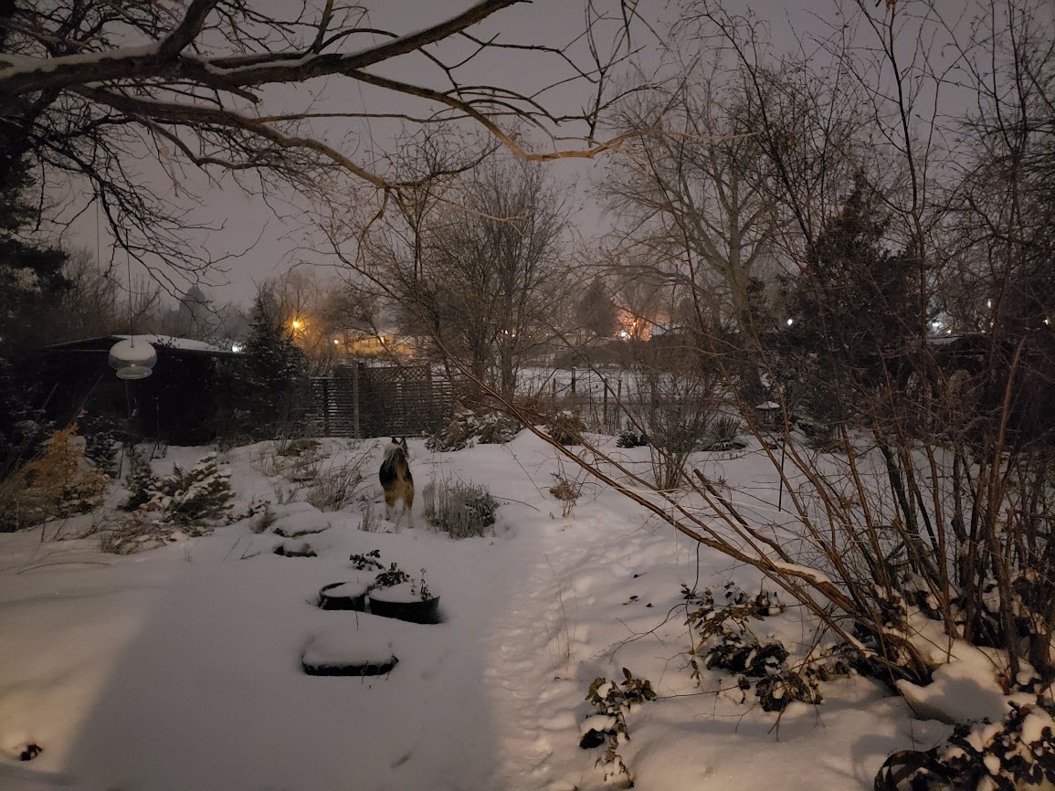 This is what it looked like night before last, at about midnight, when it was Tinkle Time. It was cold.