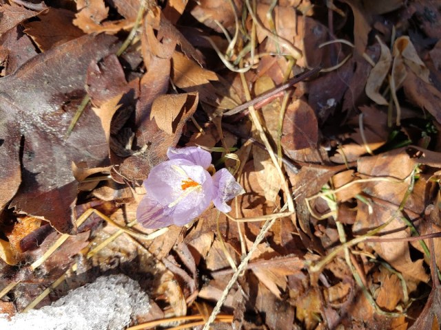 Crocuses can do thermogenesis, too, but this poor thing got frozen first. This is Crocus laevigatus. It’s normal for it to flower in late December.
