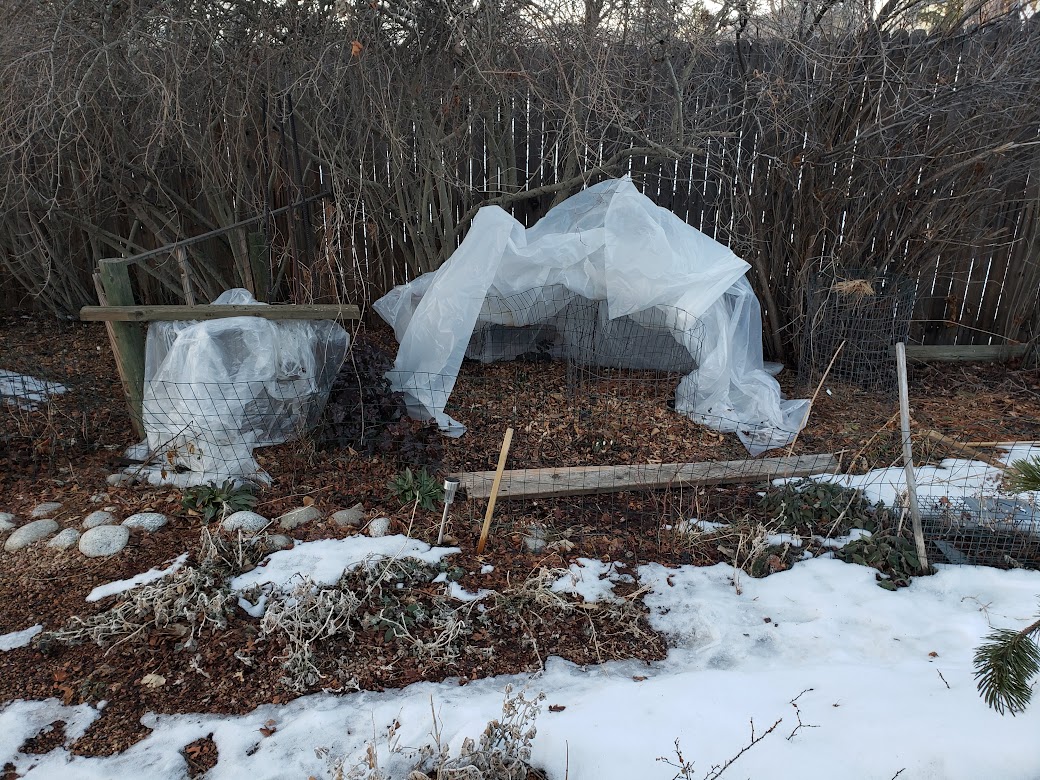 The plastic was just to help keep the soil from freezing when it got very cold, because that slows down the snowdrops, and he mainly wants them to increase.
