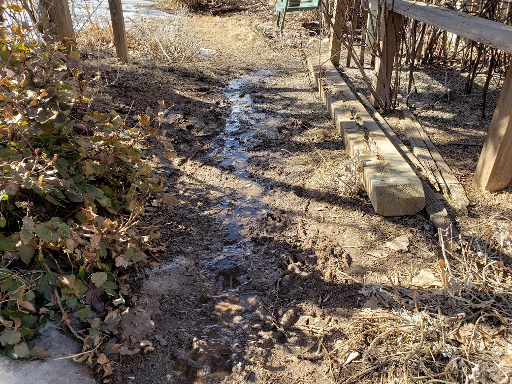 He did say he might put some rock or something here, under the arbor, because when the snow melts in the main garden, the water trickles down here and makes an incredible mess. The mud must be six inches deep.