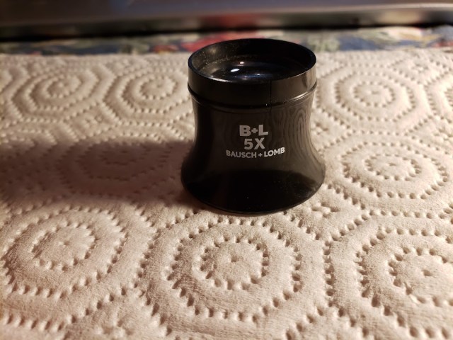 He uses a watchmaker’s loupe to be able to see what he’s doing.