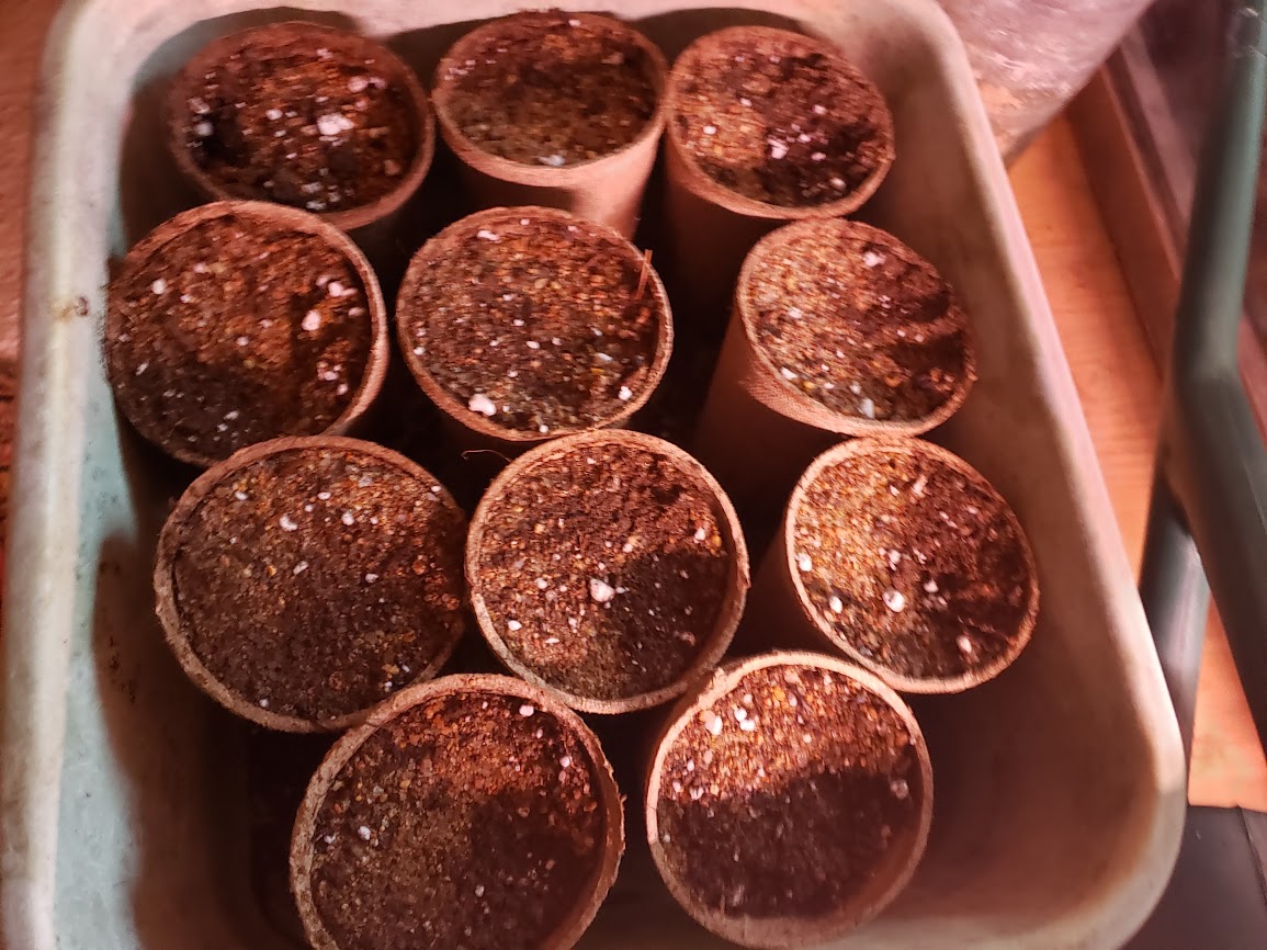 These are for more seeds to be nicked and soaked. In this case, Ipomoea leptophylla. The pots will go into the empty flat after the seeds have germinated.