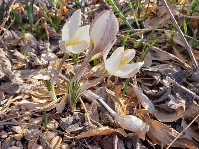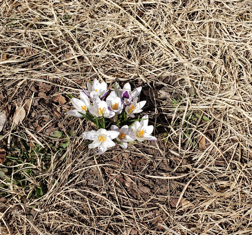 You’re a good supervisor. Sitting in the sun while minions do the work. I kind of like the brownish aesthetic in Spring as it doesn’t overpower the smaller bulb colours. Snow crocus here barely exceed an inch and a half so would hardly be visible if they were competing with green grass. Gotta love hearing the ‘Ha’s’. A true expression of triumph. More sunny days to come.