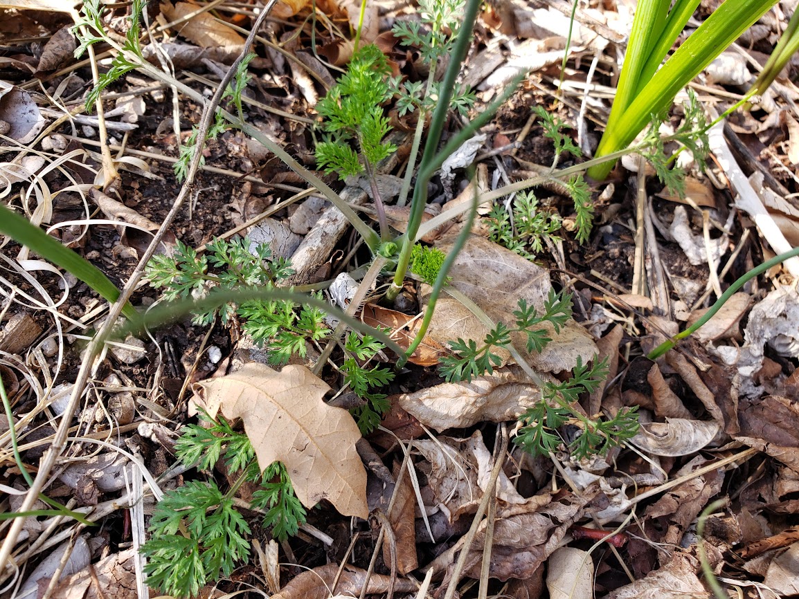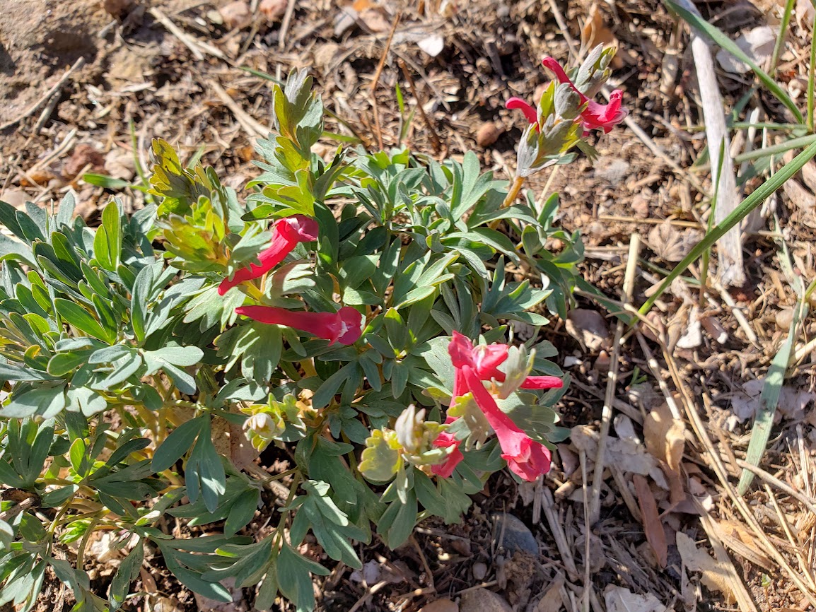 The main “crop” of Corydalis solida haven’t really started yet, but there is this seedling, growing in plain old dirt.