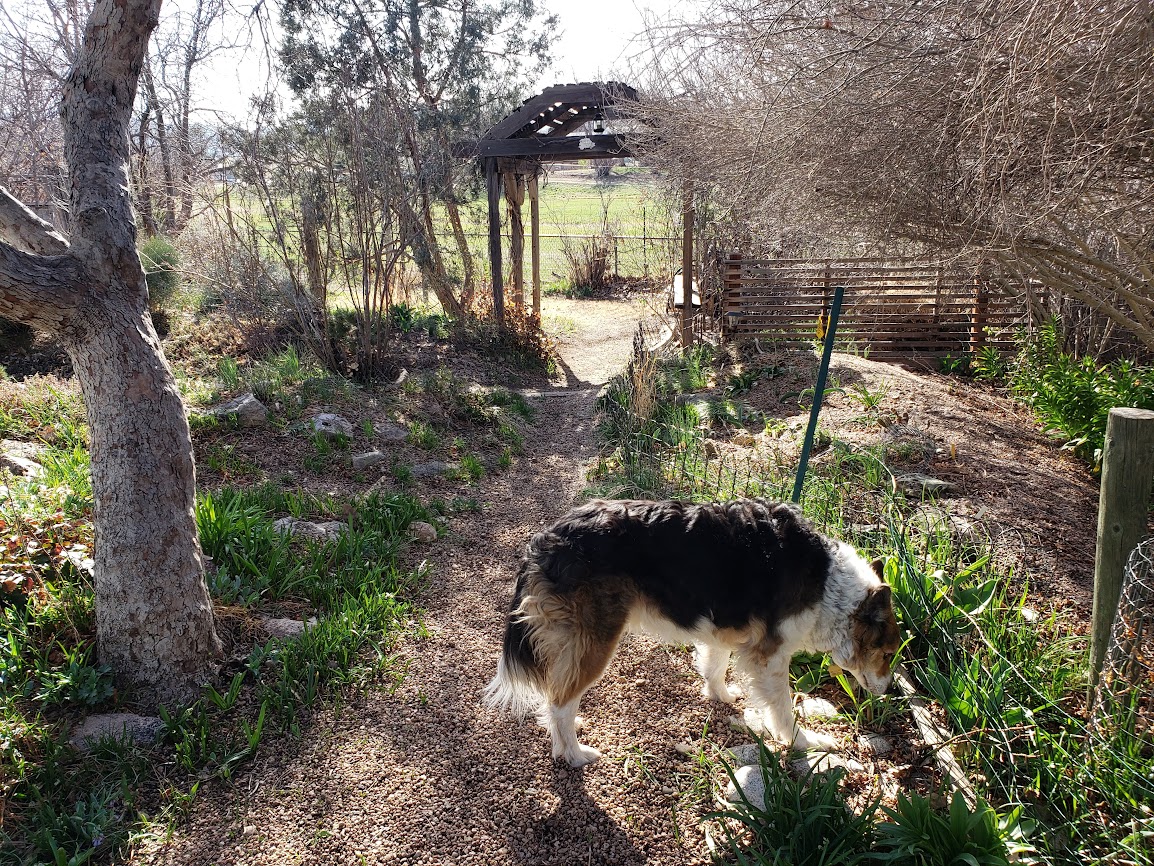 The guy I live with says that’s right. His wife loved to weed, and would spend hours in the garden, with Chess, the purebred border collie who lived here before me, right at her side.