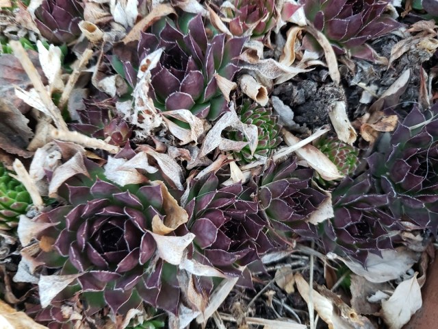 Plants are stirring in the garden. The sempervivums in the pots are growing again.
