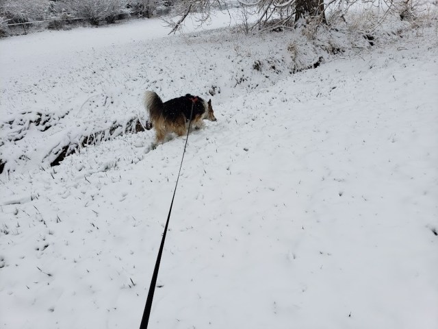 HURRAH fore snow soakin inn THE ground! Pawsum newss Mani!! π