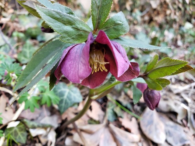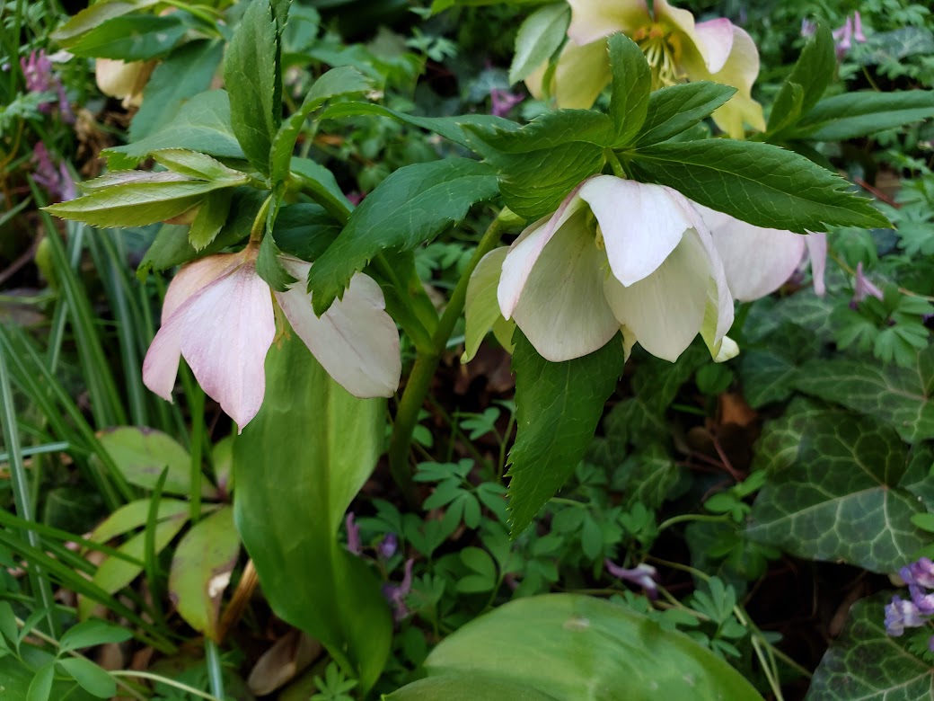 In the shade garden, hellebores are flowering. In years past they would start to flower in February, but things are different now.