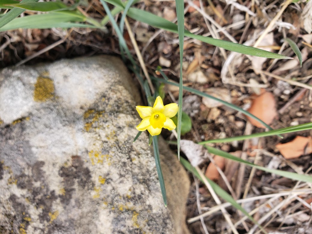 The first Narcissus rupicola is flowering. This is a tiny narcissus that has also seeded all over the garden.
