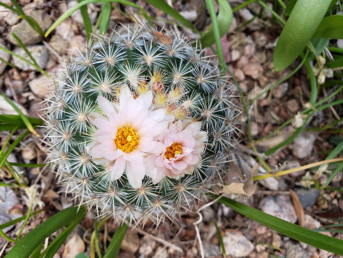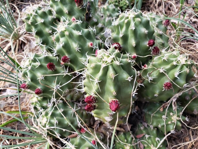 This is Pediocactus simpsonii. It often flowers in late March here, but not this year. The flowers are scented of “old roses”.