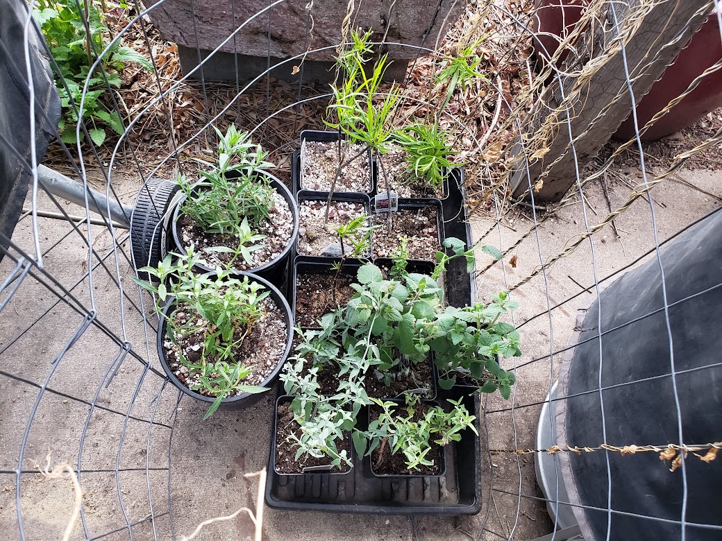 And anyway, he bought three zauschnerias at the rock garden sale, forgetting that he’d ordered two already. They’re in those gallon pots, getting the “super genius” treatment, so the roots will leave the root ball before they’re planted.