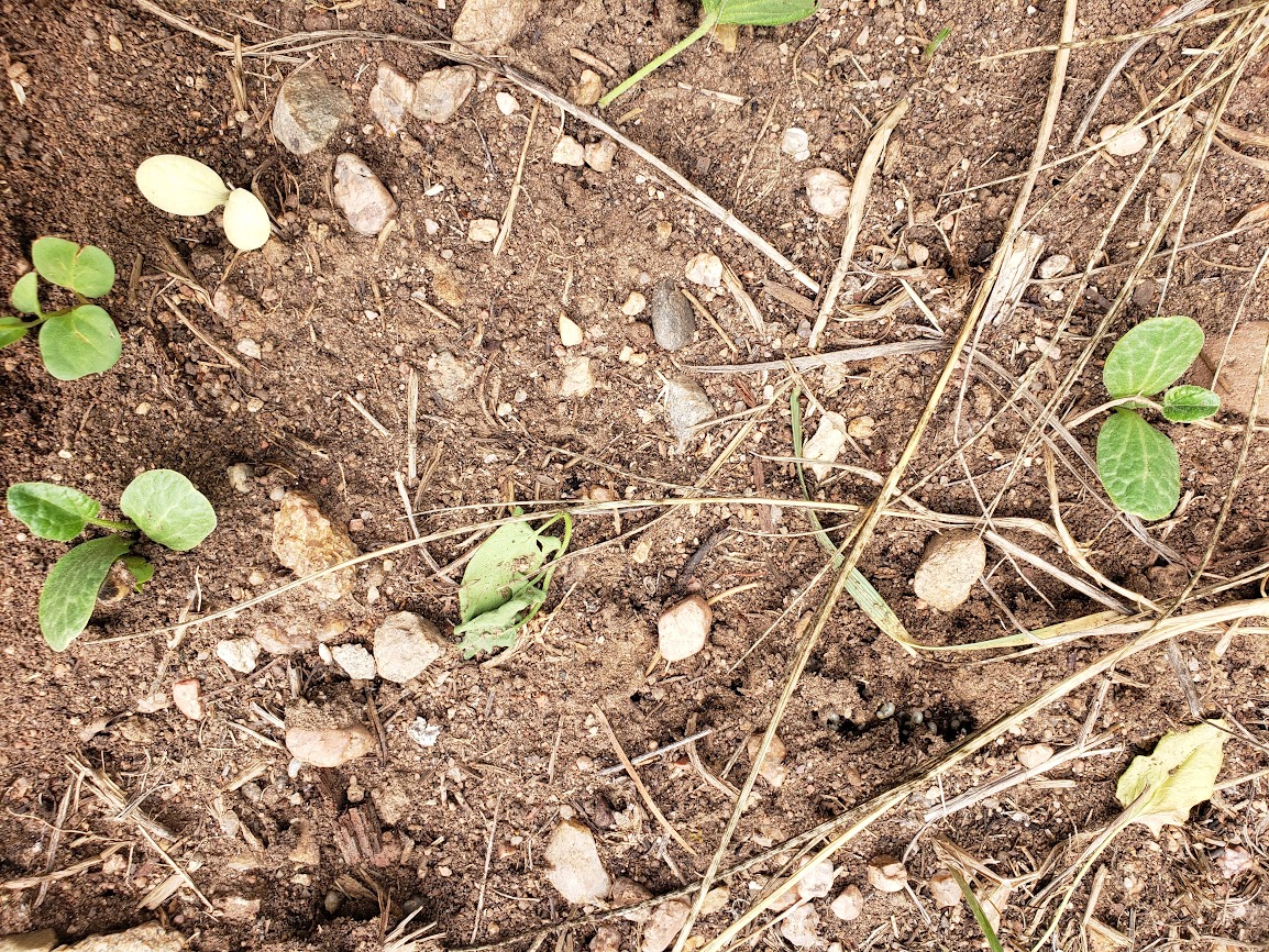 And then, well, this is sort of what you might you call an object lesson, the guy I live with spent all this time and effort trying to get buffalo gourd (Cucurbita foetidissima) seedlings, in the propagators upstairs. The seeds germinated, but the seedlings died.