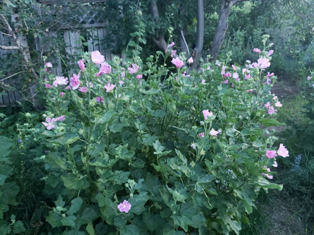 Yesterday his friend came over, and I took her out to the “way back” to show her how huge everything was there. Lavatera thuringiaca especially. Not the greatest picture in the world, I guess.
