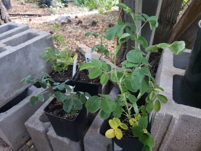 The roses planted there last year all died over the winter, which made him sad, but he did admit to forgetting to mound soil around the little roses.