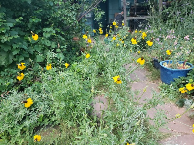 Now I am tempted to try growing Ratibida columnifera again. They didn’t seem to like our winter wet, but maybe up under the Douglasfir trees where it is drier. Wondering if they might also be able to stand up to giant horsetail – somehow I think not.