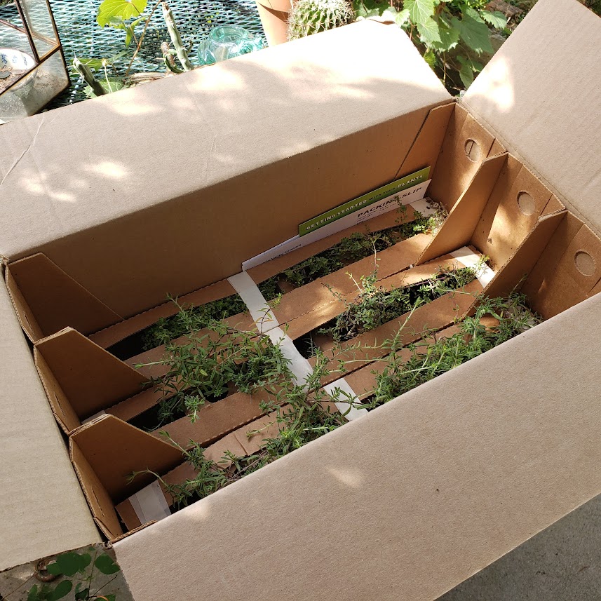 The guy I live with said that thymes would be an excellent choice, so he ordered some from Mountain Valley Growers in California.