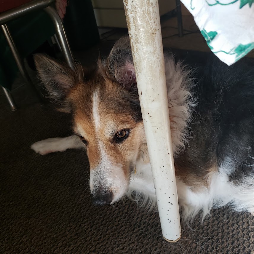 I’ll leave you with a picture of me lying under the table, catching the cool breeze from the swamp cooler.