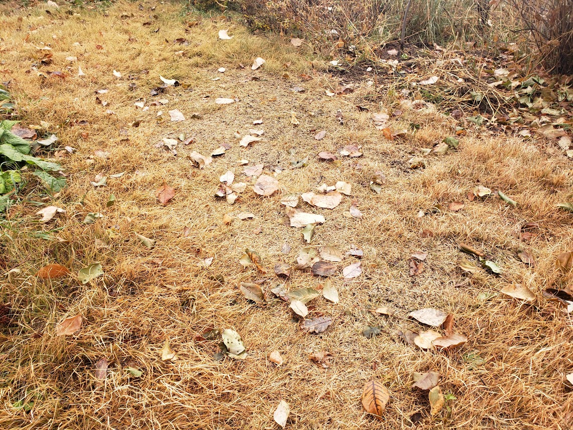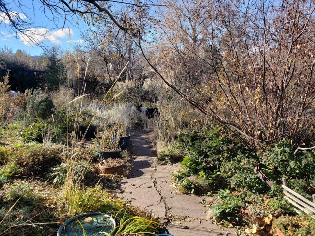 A few days ago a rabbit got into the garden and we looked all over to see where it might have gotten in. The rabbit had been eating the now-dormant buffalo grass in my Private Lawn. I think you can see the grazed area there. This doesn’t hurt the grass.