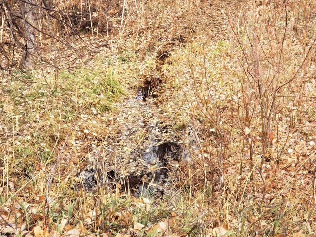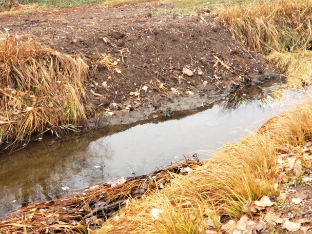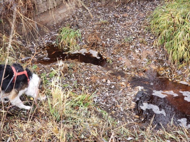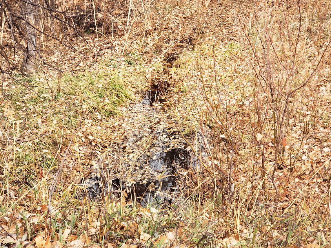 This is where the little ditch for stormwater, on the left, meets the creek, and just before the creek goes into the culvert under the canal.